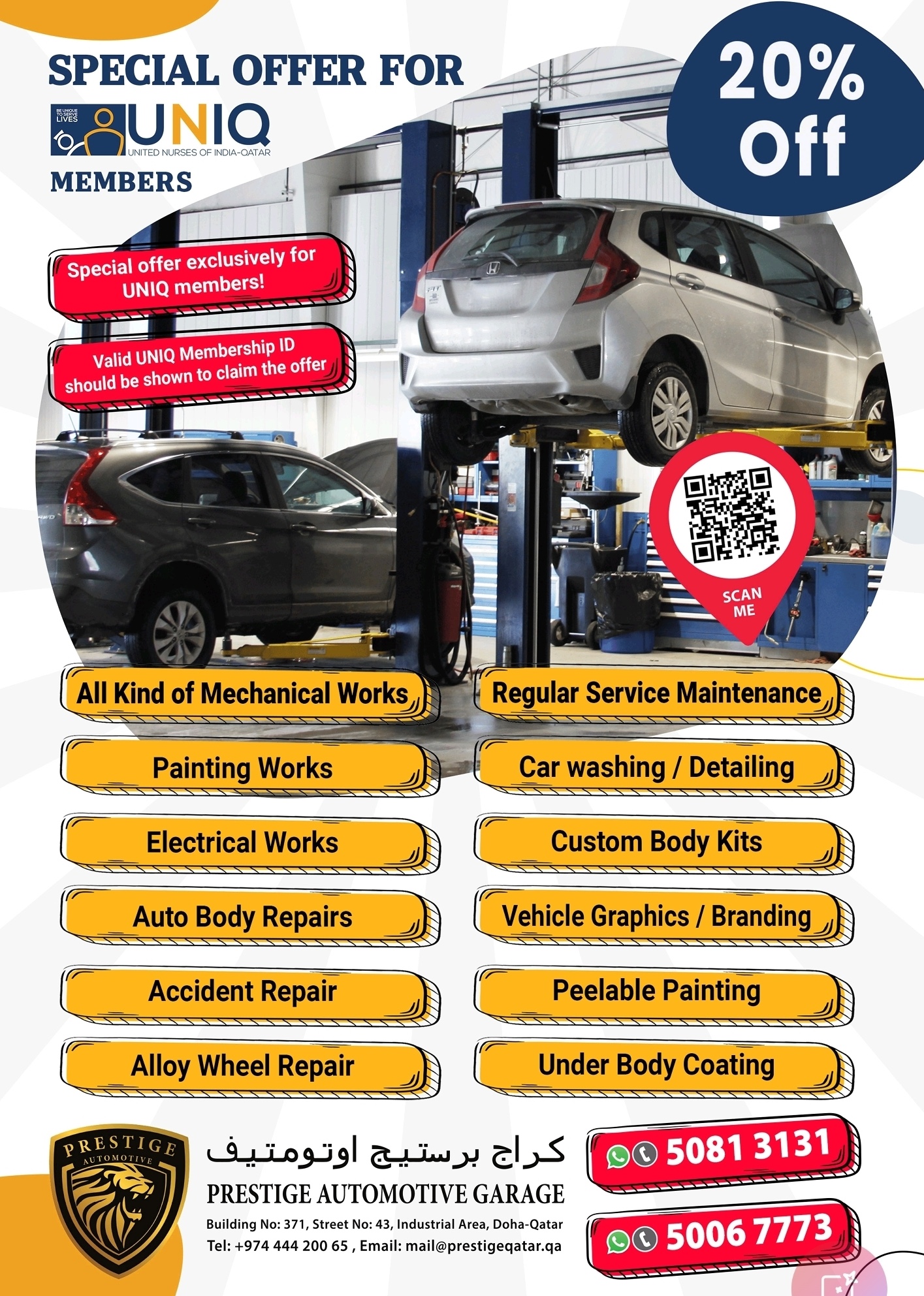 Exclusive Offer for UNIQ Members at Automedics Garage Enjoy the privilege dear UNIQ members 20% discount for mechanical service charges!!