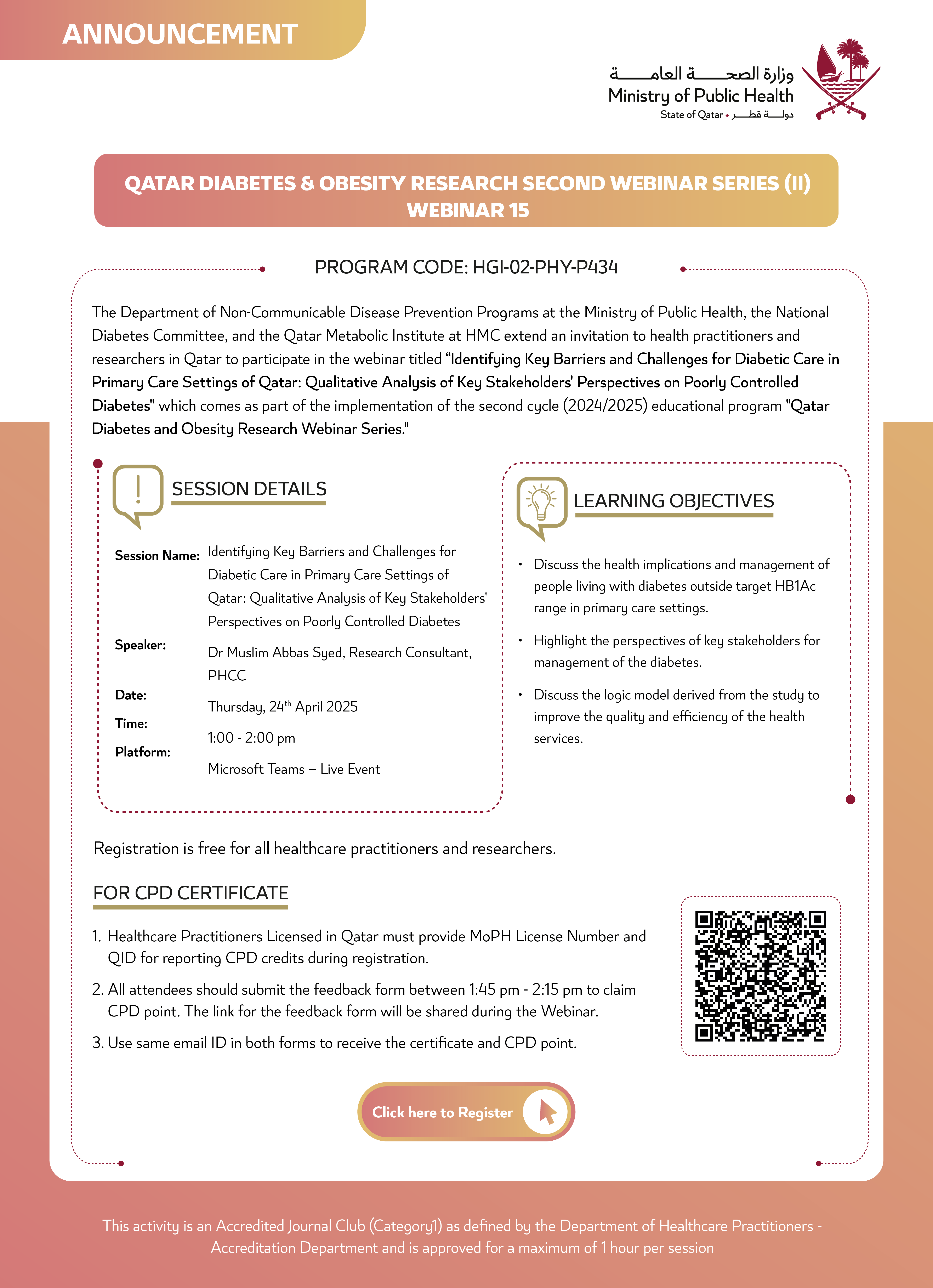 Qatar Diabetes and Obesity Research Webinar Series 24-April-2025